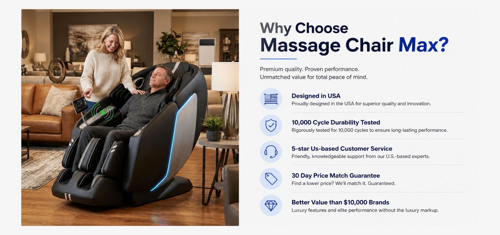 I spent about a week researching this chair, working with AI and the company’s chat support before deciding on the Massage Chair Max A66. Being able to demo a chair would be ideal, but that’s rarely practical, so I relied heavily on specs, support, and real‑world feedback.
