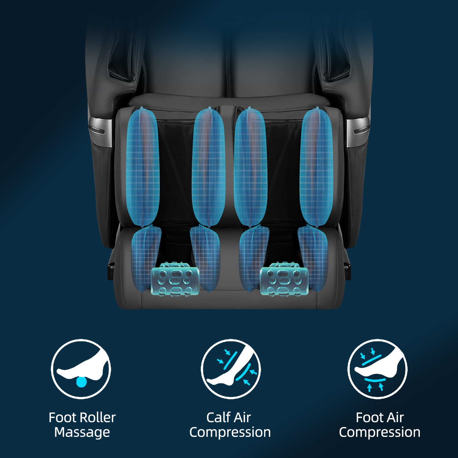 The A188 features a comprehensive massage experience with back rollers, full-body airbag massage, lumbar heating, and leg stretching capabilities, ensuring you can enjoy a complete full-body massage from the comfort of your own home.