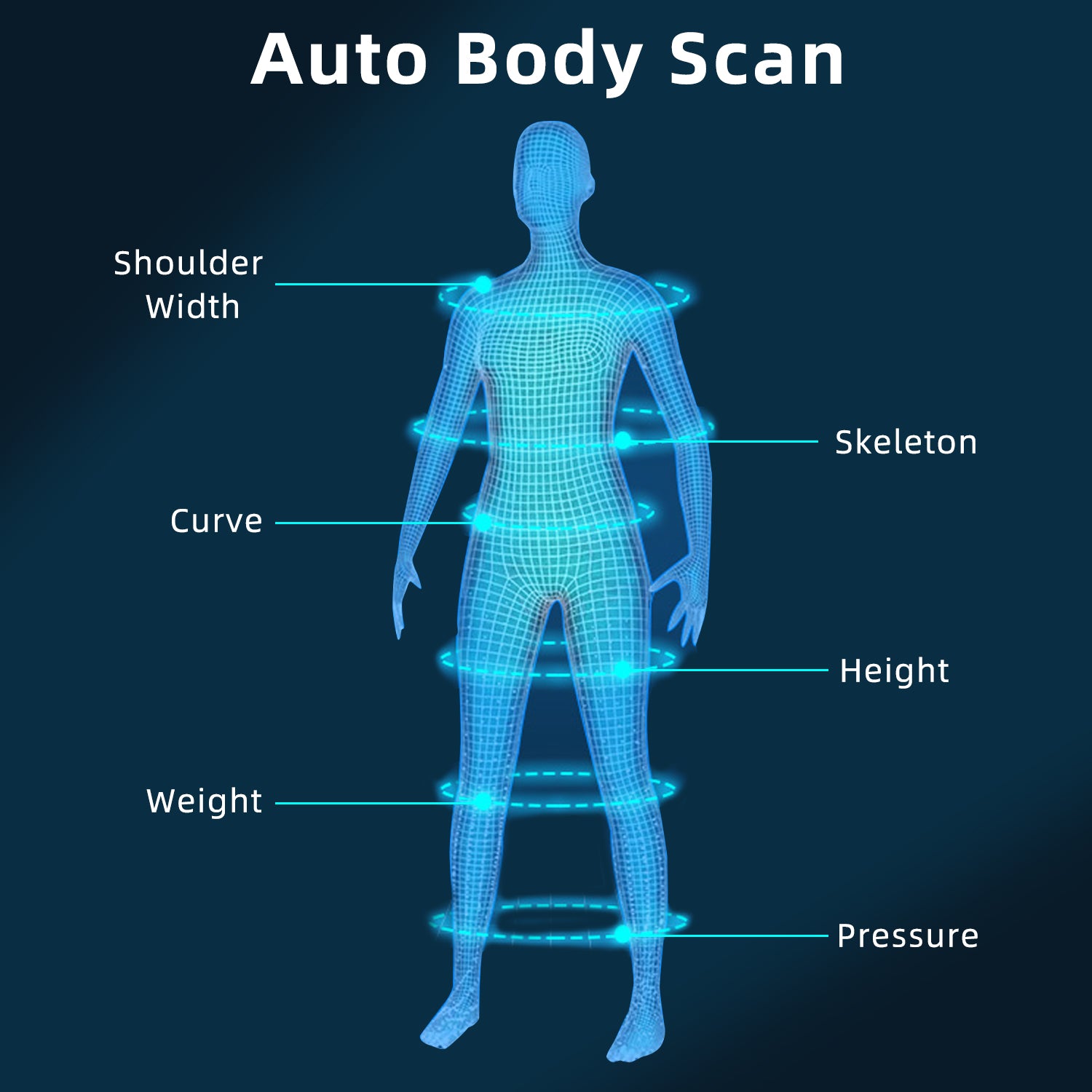 Auto body scan refers to your body height, weight, and spine data detection, then adjust a proper massage position to match your neck, back, waist, and so on.