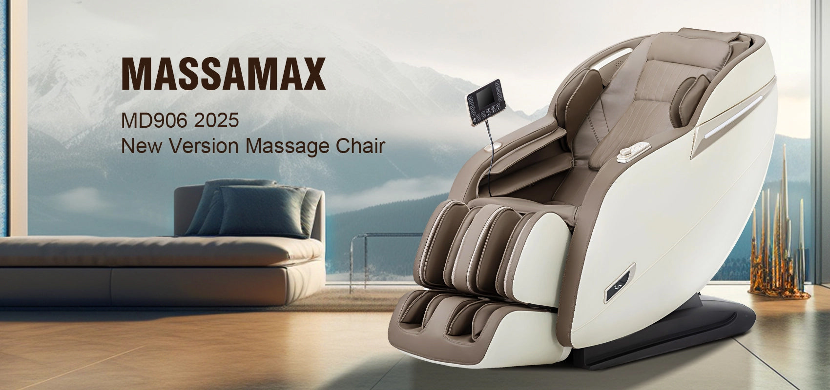 MassaMAX MD 906 is a new version massage chair for 2025. Equipped with 3D rollers, an SL Track design, and full-body airbag massage, which can effectively relieve fatigue and muscle soreness caused by work and sports.
