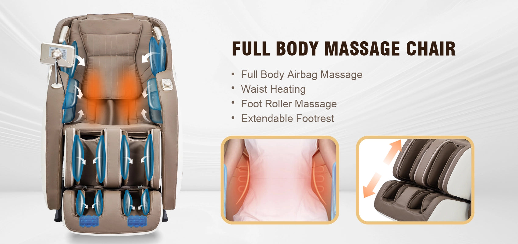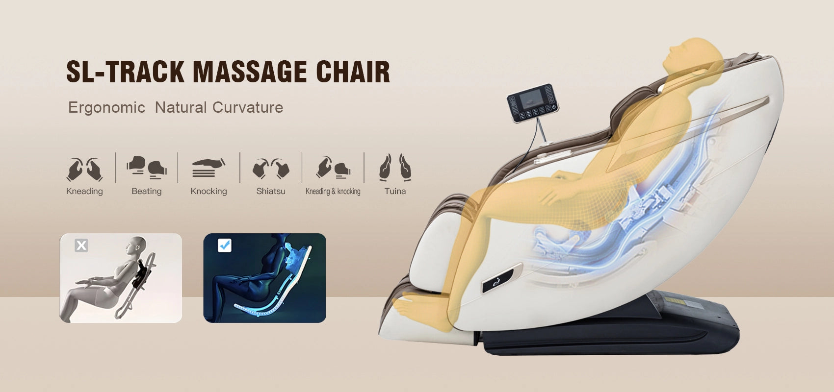 Combined with human engineering and studied super long”SL” shape space curved rail technology, Massage distance is 53.15”, makes you enjoy a personal massage from the neck to the leg, helps to maintain the human body vertebra “S” shaped curve, achieves relaxing the spine and relieve tense muscles.