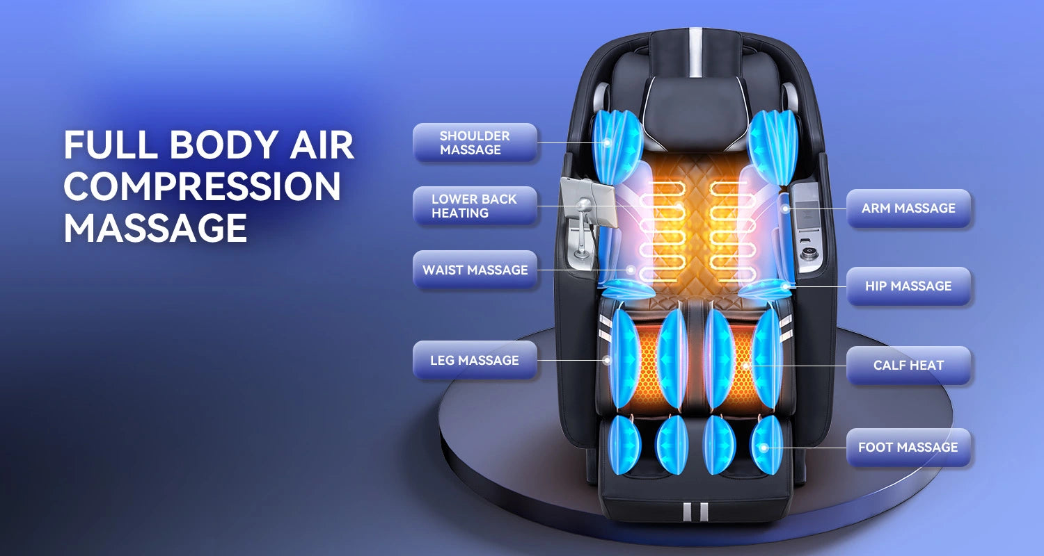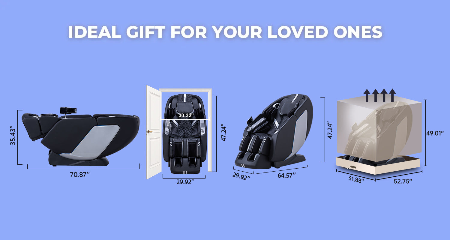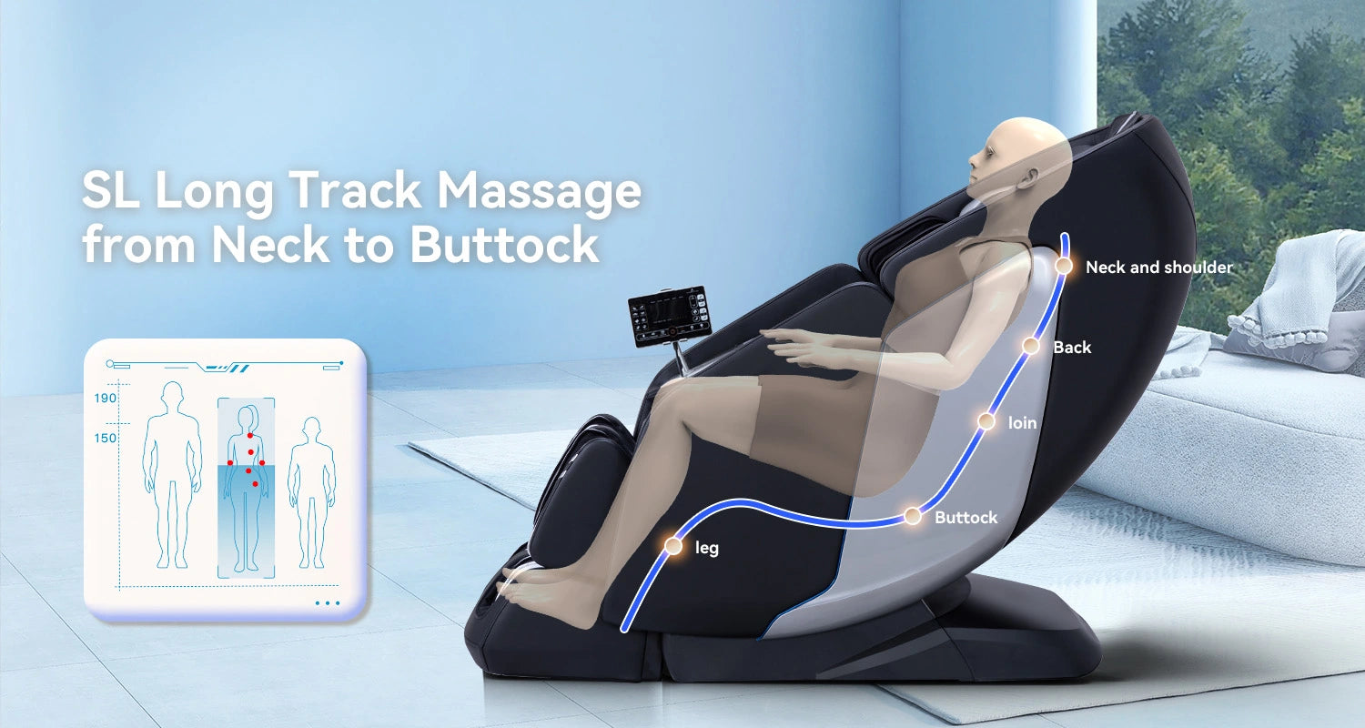 Combined with human engineering and studied super long”SL” shape space curved rail technology, Massage distance is 53.15”, makes you enjoy a personal massage from the neck to the buttocks, helps to maintain the human body vertebra “S” shaped curve, achieves relaxing the spine and relieve tense muscles.