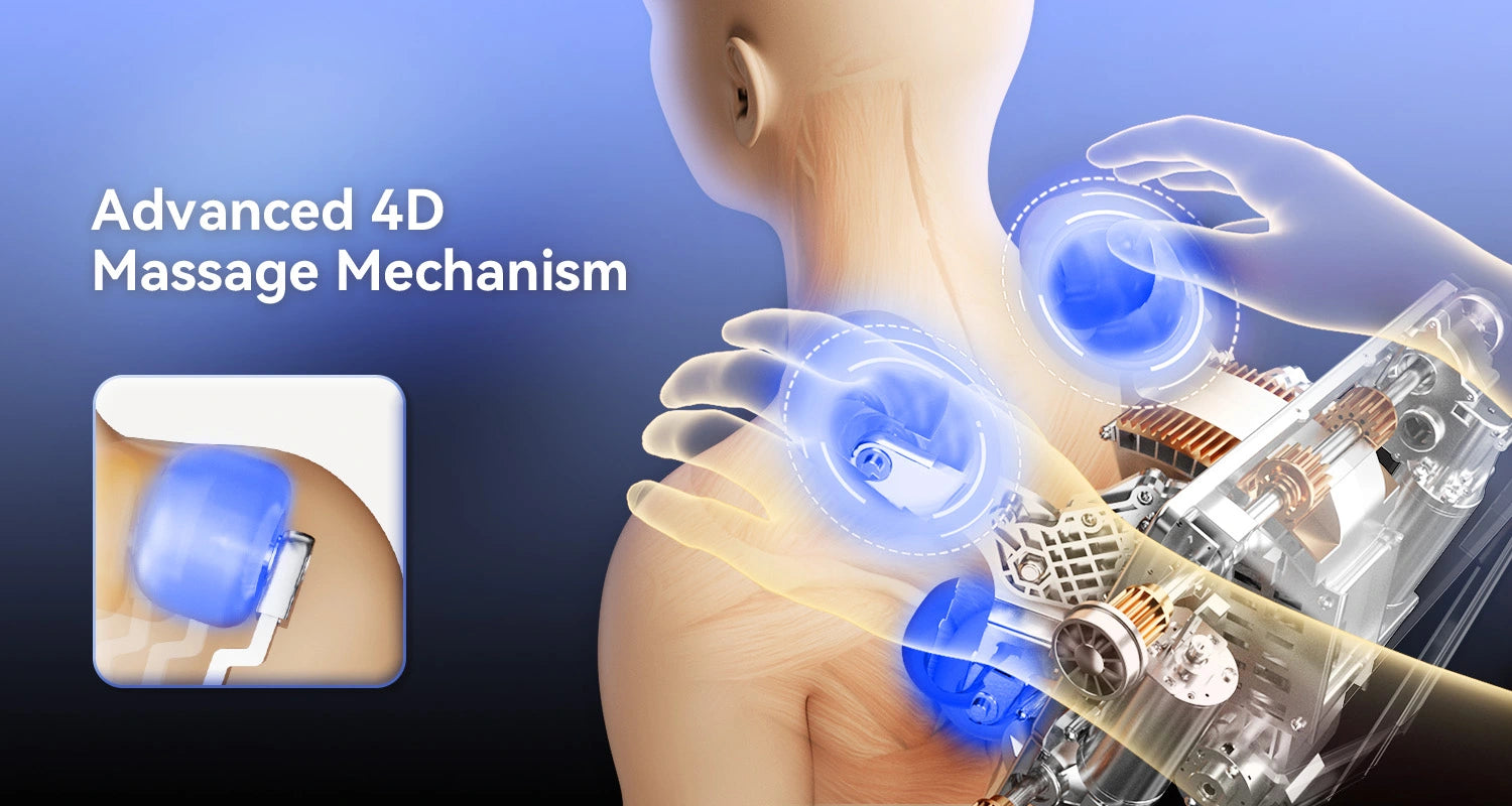 The flexible manipulator automatically detects and fits the neck, shoulders, back, waist, buttocks, and other parts of the human body, making it more docile and accurately rubbing every soreness.