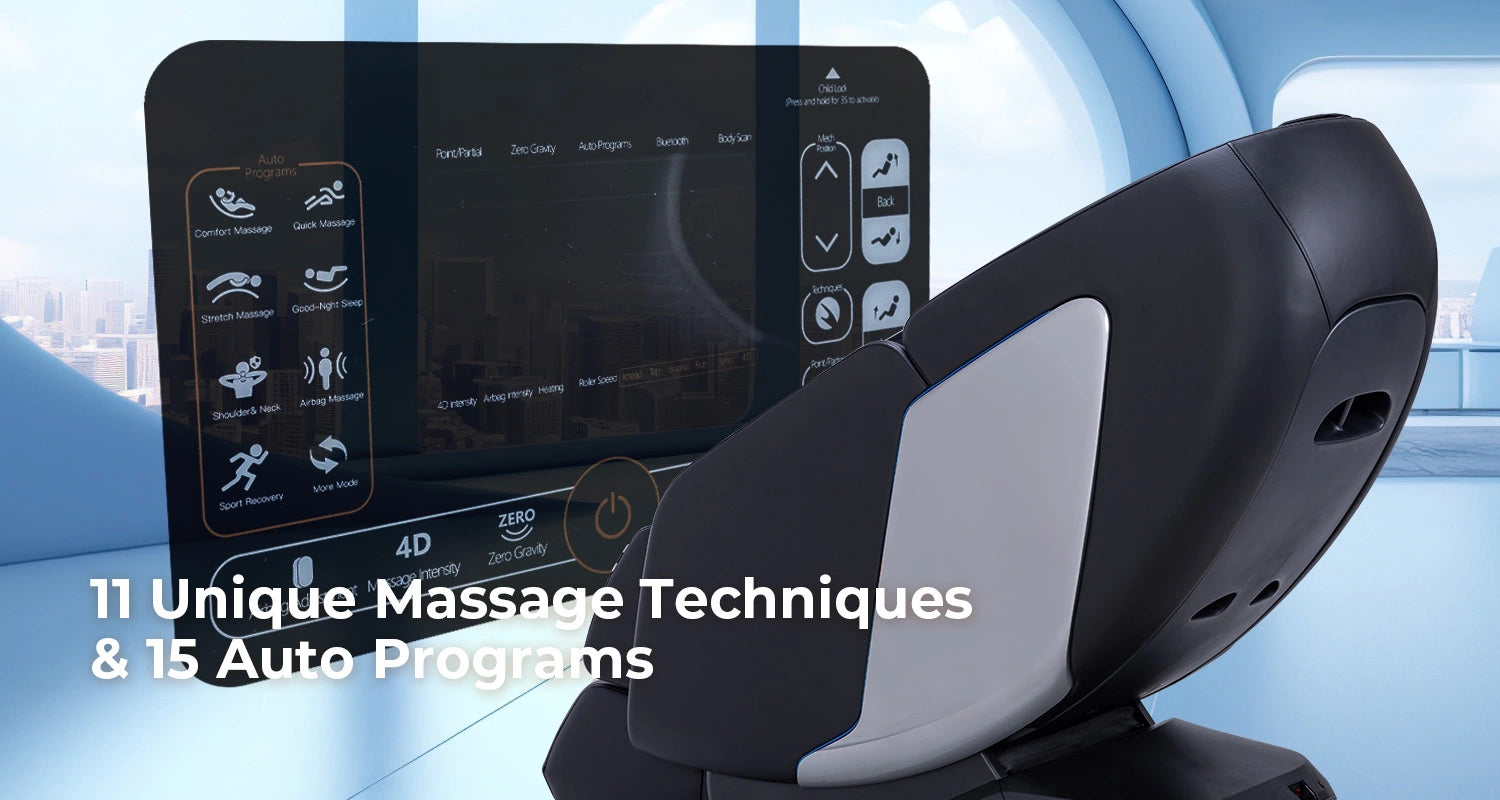 Tailor your relaxation with 15 distinct massage techniques and 11 unique styles, allowing you to customize your massage session according to your preferences.